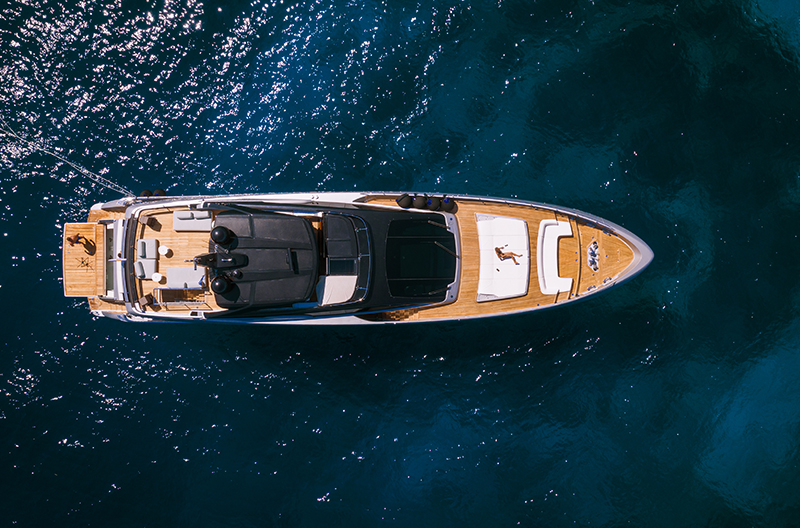 The top flybridge is the highlight of this magnificent yacht, with ample seating and breathtaking views that will leave you in awe.